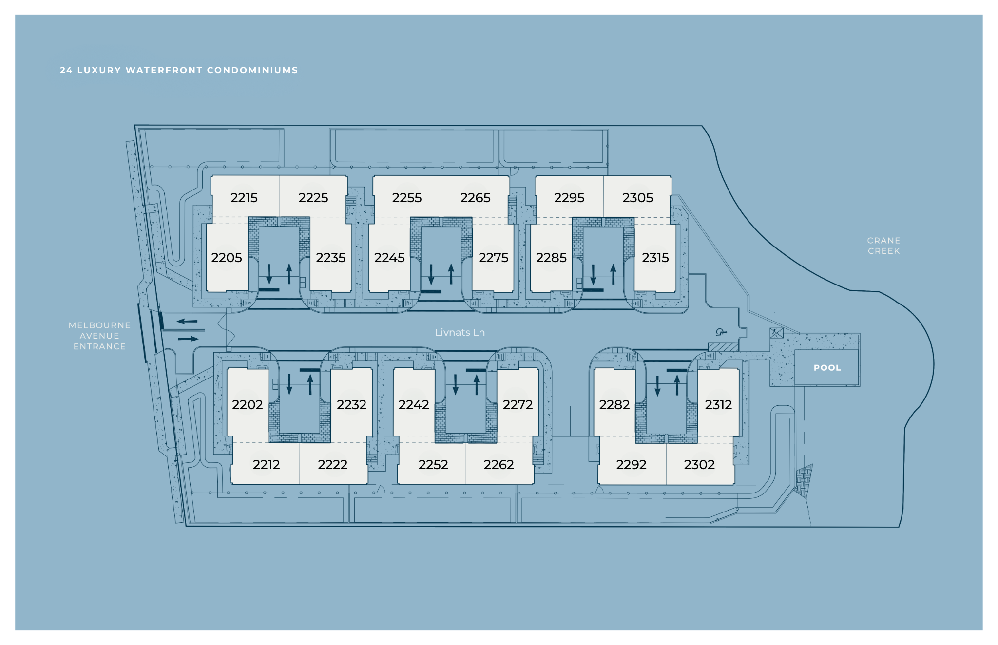 All units are identical 4BR/4BA, 2,300 SF — pricing varies by position only
